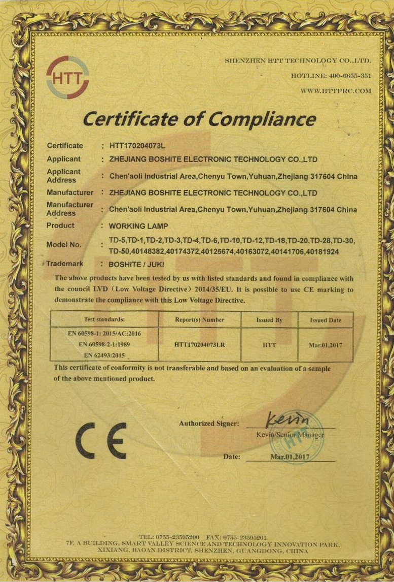 “BOSHITE” 商標(biāo)注冊證