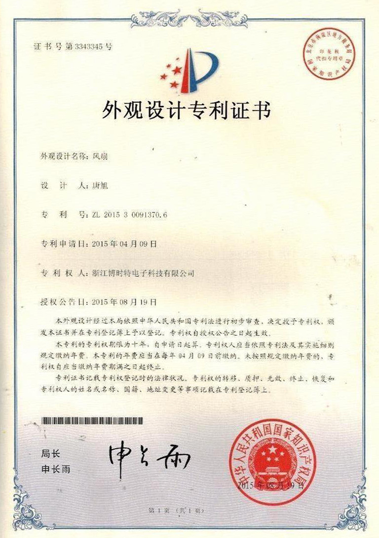 外觀設(shè)計專利證書
