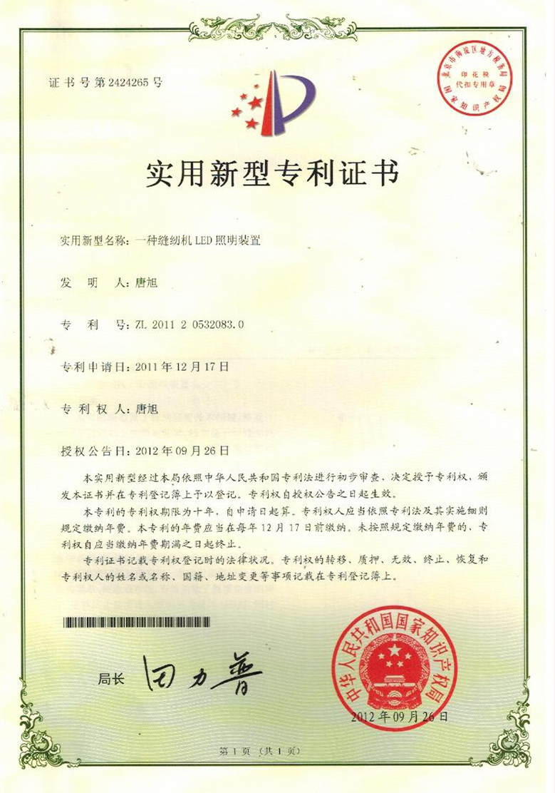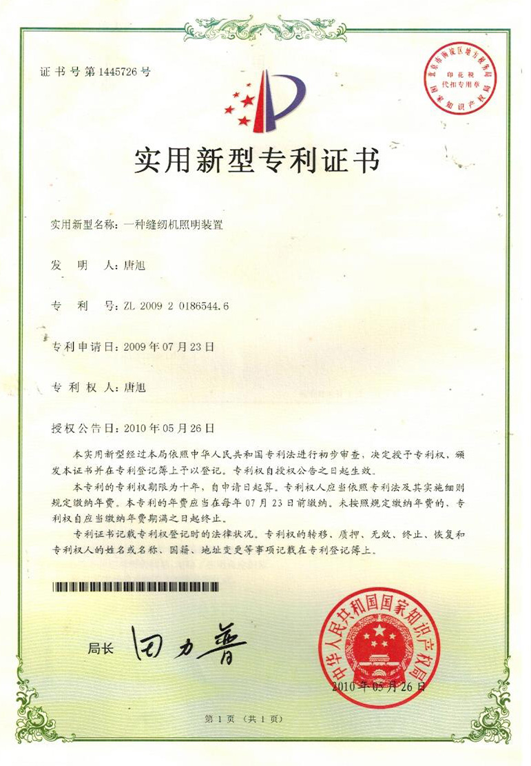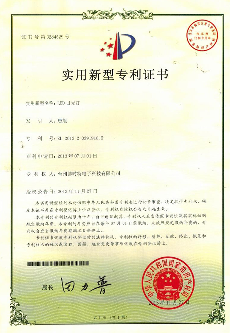 實用新型專利證書
